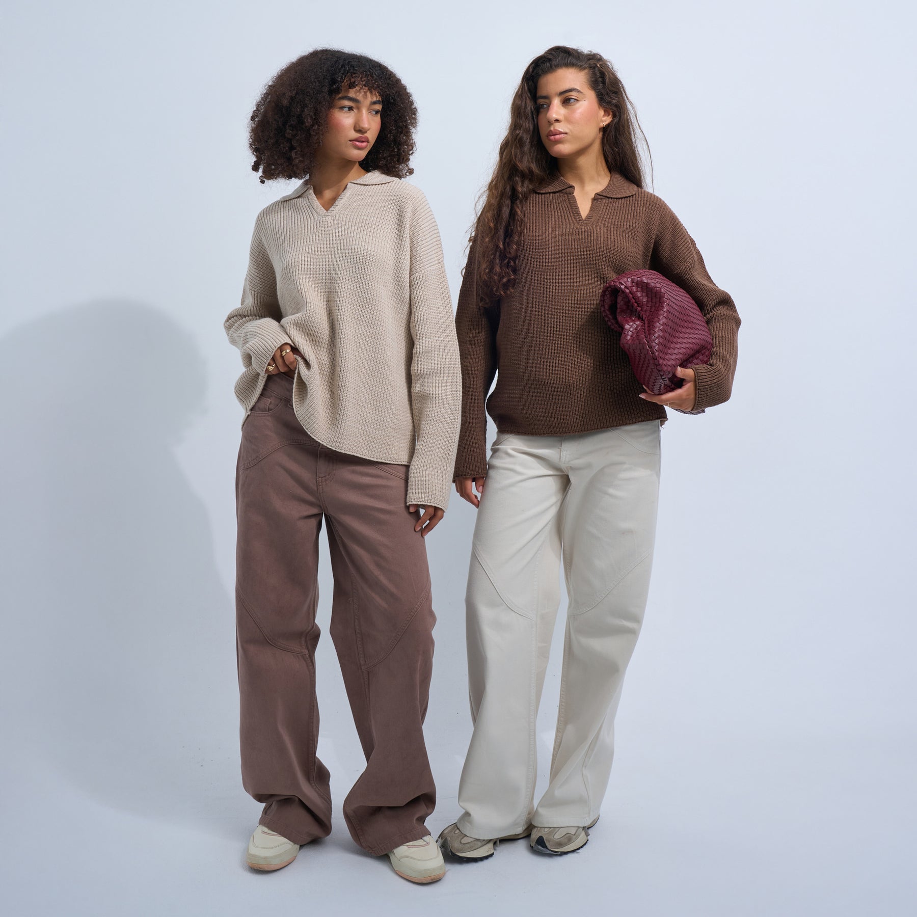 Brown Women's Knit V-neck